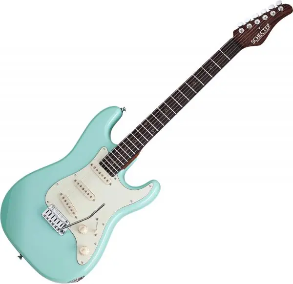 The SCHECTER Nick Johnston USA (7050) solid body electric guitar is the signature model of a tremendous Fusion/Prog/Blues instrumental guitar player from Canada. Inspired by a great american classic (Alder body, bolt-on Wenge neck with 22 Jescar frets on Macassar Ebony fingerboard, signature single-coil pickups and vintage -style tremolo), the Nick Johnston Traditional offers amazing performances. Excellent built quality, great playing comfort.