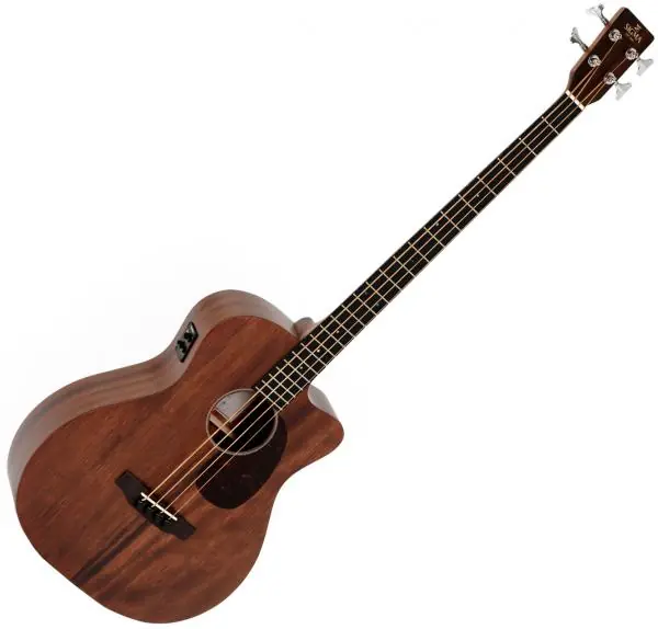 SIGMA BMC-15E is a Jumbo cutaway acoustic/electric bass with solid Mahogany top, layered Mahogany back/side/neck and Rosewood fretboard. Its preamp is a popular Fishman Presys II with integrated tuner. Gig bag included.