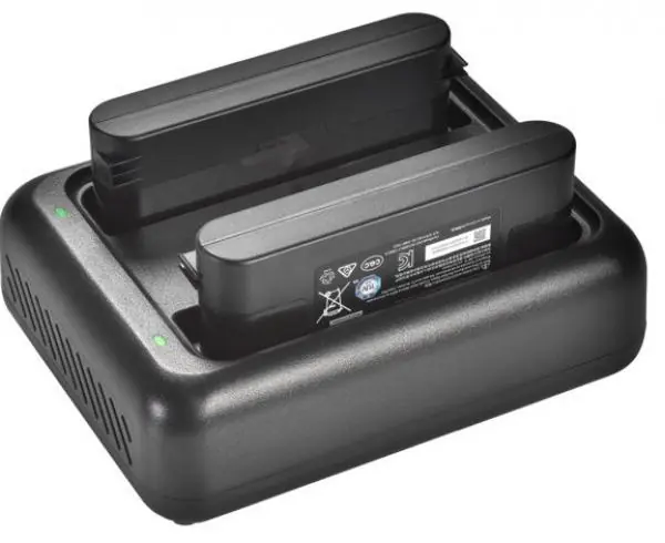 the battery charger for Eone-one Compact.Externally charge EON ONE Compact batteries with the EON ONE Compact Dual Battery Charger. This dual slot charger charges up to two EON ONE Compact batteries externally to full capacity in less than 7 hours.