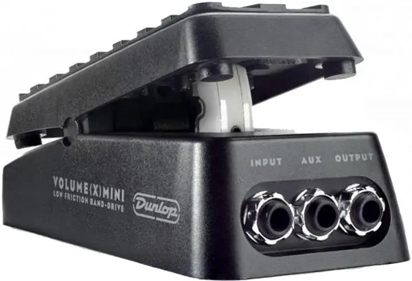 JIM DUNLOP Volume X Mini Pedal DVP4 : Controls volume levels and FX parameters – Low Friction Band-Drive for smooth, durable performance – AUX output for switchable tuner/expression functionalityControl your volume and FX parameters without crowding your pedalboard. Saving space doesn’t mean skimping on durability or functionality—the DVP4 Mini Volume (X) Pedal does everything that the larger DVP3 does at half the size, and it’s just as durable and solidly built with a lightweight aluminum chassis, aggressive non-slip tread, and our patented Low Friction Band-Drive for a smooth range of motion and consistent, reliable performance. For maximum comfort and precision, the DVP4’s rocker tension is fully adjustable. The AUX output combines tuner and expression functionality into one jack that can be toggled with a switch inside the pedal. When using the DVP4 as an expression pedal, you can use an internal pot to set the minimum level of the parameter you’re controlling with the rocker. If you want to reverse the function of the heel-down and toe-down positions, the DVP4 has another internal switch that allows you to do so. Don’t sacrifice control over your volume level and FX pedals just because you’re using a travel-sized board. Get yourself a Volume (X) Mini Pedal.