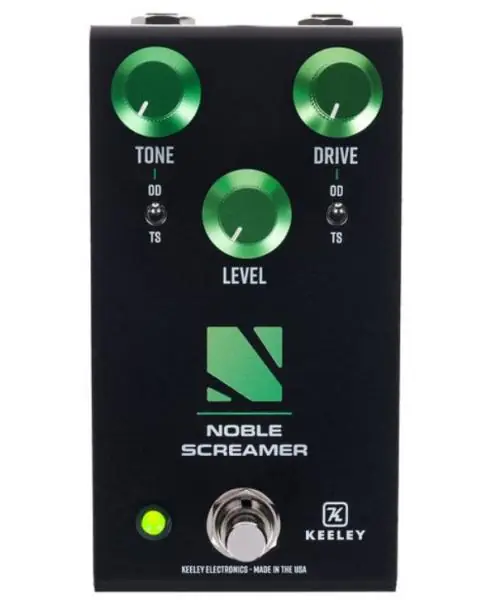 KEELEY Noble Screamer Overdrive and Boost is a 4-in-1 pedal that gives you two very familiar drive circuits and two amp-like distortion tones that no one has used before. It’s almost like pedal-modeling, except these are 100% analog circuits, and you decide which tone-control or clipping-section you want to play through.You can play through battle-tested, classic overdrive effects or innovate music with hybrid tones, let your ears be the judge. Even with all of these features the pedal remains a simple and easy to use three knob overdrive. The innovation in the Noble Screamer doesn’t end there; The circuit features true-bypass or buffered, truly silent switching, on the fly. The Keeley Noble Screamer Overdrive and Boost is entirely manufactured at Keeley Electronics in custom aluminum enclosure.- Four Overdrive and Boost sounds – including two amp-like hybrid tones- Silent Buffered Bypass or True Bypass – hold down foot switch to change quickly