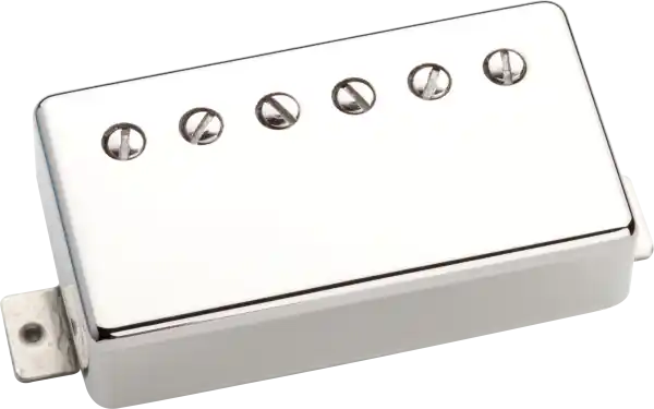 Designed jointly by Seymour and humbucker inventor, the late Seth Lover. Just like the original 1955 P.A.F.s, the SH-55 utilizes a nickel silver cover and long-legged nickel silver bottom plate, butyrate plastic bobbins, plain enamel wire, Alnico 2 bar, wooden spacer, and black paper tape. To be completely true to the original design and tone, the pickup is not wax potted. The tone is vintage P.A.F. The unpotted cover gives a slightly “honky” microphonic quality. Vintage style single conductor cable standard