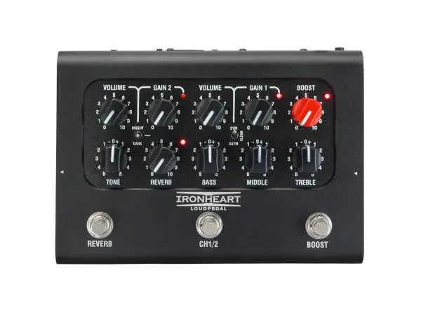 Beautifully hand crafted at our UK workshop (Black Country Customs) the IRONHEART-LOUDPEDAL is ingeniously engineered to reproduce our renowned IRONHEART tone in a compact, analogue pedal amp configuration. Boasting two independent channels a robust 60-watt power output, this amplifier incorporates dynamic GAIN switching, plus captivating reverb, and a footswitchable BOOST function. Developed in close collaboration with Martin, whose ongoing involvement in refining the design has been instrumental, the IRONHEART-LOUDPEDAL ensures the delivery of exceptionally expressive and sonically lush IRONHEART tones in a conveniently pedalboard-friendly package no bigger than a double pedal! The IRONHEART-LOUDPEDAL is truly versatile when it comes to shaping your guitar tone. Channel 1 features the ability to shape the gain response of the channel, from clean to asymmetric or symmetrical clipping. Channel 2 features three different voicing modes – Bright, Dark, and Flat.
