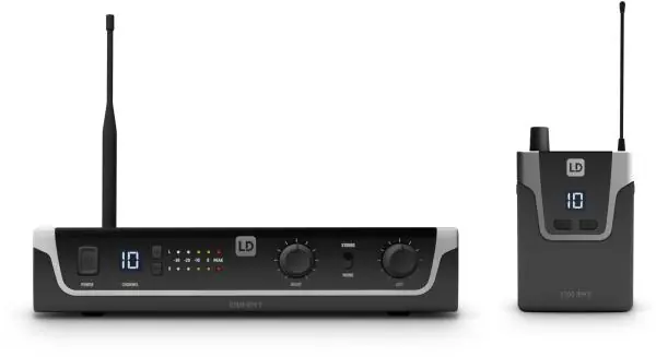 The LD systems U308 IEM is an In-Ear Monitoring System – 863 – 865 MHz + 823 – 832 MHz.Reliable radio transmission up to 100 m rangeLow frequency response12 channels to choose fromStereo or Mono mode of your choiceUp to 6 systems can be used simultaneouslyBattery life of the portable receiver of 10 hours with two AA batteriesPossibility of tuning an unlimited number of portable receivers to the same transmission frequencyHandheld receiver display of channel and RF receptionTransmitter in solid metal housing with stereo level displayRemovable antenna with BNC connector19″ rack mounting kit included in delivery.