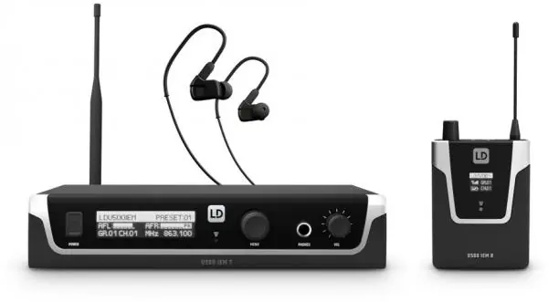 Le ld Systems U505 IEM HP est un Système d’In-Ear Monitoring sans Fil avec écouteurs – 584 – 608 MHz.Système d’écoute intra-auriculaire fiable avec une portée de plus de 100 m96 canaux disponiblesPuissance de transmission sélectionnable de 2, 10 ou 30 mW ERPSynchronisation pratique des fréquences par infrarougeAttribution d’un nom d’utilisateur individuel et mémoire pour 10 préréglages personnalisésRéponse en fréquence étendueÉgaliseur à 3 bandes avec médiums paramétriquesLimiteur commutableModes de fonctionnement stéréo, focus et monoÉcran OLED à fort contrasteÉmetteur avec sortie casque pour le monitoring directRécepteur de poche avec trois niveaux d’accord silencieux sélectionnables10 heures de fonctionnement du récepteur de poche avec deux piles AAFonctionnement simultané de 12 systèmes maximumL’émetteur IEM U500® est compatible avec les bodypacks IEM U300®.