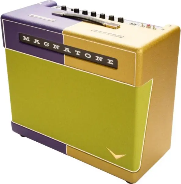 Lightweight MAGNATONE Master Collection Super Fifteen 1×12 Combo Mardi Gras all tubes 45 watt EL34 amp offers Big sound, effects loop, master volume, headphone jack and speaker emulation for silent practice. Super Fifteen is the master volume model for professionals and amateurs alike. Enjoy 15 watts of dual EL-84 tubes for British sparkle, chime, and gain, in a compact size. Perfect for a medium sized club. Speaker emulation feature for silent practice, so you can use with the headphone jack with separate volume control, or go direct to console or computer. The feature packed Super Fifteen is light on the back and on the wallet. The Master Collection is the perfect culmination of British inspiration and American soul ! Featuring both EL34 and EL84 models.