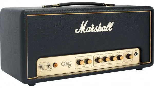Inspired by simple Marshall vintage amps and perfectly suited to work with effect pedals, the all-tubes MARSHALL Origin 20H Head for electric guitar (20 watts with power reduction switch, 1 channel) offers the classic sound and with special features, but at a lower power to suit those who play or record at home.Independent of the main EQ, the tilt parameter is a filter that adjusts your tone and can change the voice of your amp, from a traditional Marshall toneto a vintage high treble style.You can activate a gain boost (pull volume pot) if you need more bite and distorsion.Powerstem circuit/switch reduces the voltage rails around the power amplifier, offeringpower reduction without changing the sonic identity.