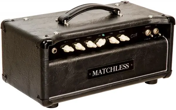 The MATCHLESS C-15 Head Black/Silver electric guitar amplifier offers the same tonal characteristics of a C-30 at lower volume and in a more portable package.A long list of musician designed features includes : highly interactive tone controls and circuitries unique to each channel, master volume and effects loop. One EF86 in Channel 2 consists of a high-gain pentode coupled to a six-position rotary tone switch. Outright benefits include quick dial-in of new tones and an easy return to the settings you prefer. Also master volume works for both channels. The preamp signal passes through a 12AX7 in the phase inverter position to the output section of two EL84 power tubes.Other professional features include an effects loop and an output impedance selector for 4, 8, 16 ohm speaker configurations.