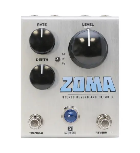 Experience the ultimate reverb with the Keeley ZOMA, featuring two immersive modes: the lush, vintage-inspired Spring Reverb and the rich, expansive Plate Reverb delivering true stereo sound that transforms your tone with precision and depth.Immerse yourself in the rich textures of the Keeley ZOMA’s three distinct tremolo modes: classic Sine Wave Tremolo, vibrant Harmonic Tremolo, and dynamic Pitch Vibrato crafted for true stereo sound and unmatched tonal versatility.