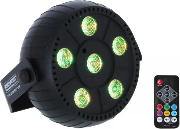 The Power Lighting Par slim Bat XRP is a battery powered par slim.The PAR SLIM BAT XRP is an ultra compact battery powered RGB LED spotlight. Its battery has an autonomy of 6h max and its 6 LED of 1,5W with 25° opening allow this projector a great flexibility of use to obtain festive and/or decorative atmospheres where you want and when you want for a very affordable price. Delivered with its IR remote control, its suspension lyre and its power supply.
