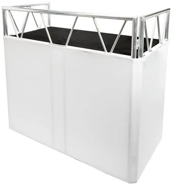 The Headliner Indio DJ booth was designed with the mobile DJ and small venue in mind.This highly portable booth sets up in minutes and weighs just under 40 pounds, making it ideal for weddings, mobile events, bars, restaurants and small venues. Made from sturdy 1.3″ aluminum tubing, the Indio DJ booth is compatible with standard Jr. clamps (35mm), allowing users to hang lights or other equipment in and around the booth.