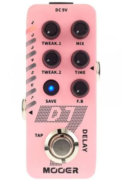 TheMOOER Micro Series D7 Delay is the 2020 redesigned multi-delay effects pedal of The New Micro Series. Using the 7 signature LED lights as a guide, this pedal houses 6 customizable digital delay effects with the seventh LED indicating the built-in LOOPER that can be used in tandem with any delay setting.Like the other pedals in the series, all of these effects are customizable and storable for your convenience. Tap Tempo functionality allows you to easily set the desired delay timing and of course, with the “Trail On” feature delay effects fade out naturally and organically