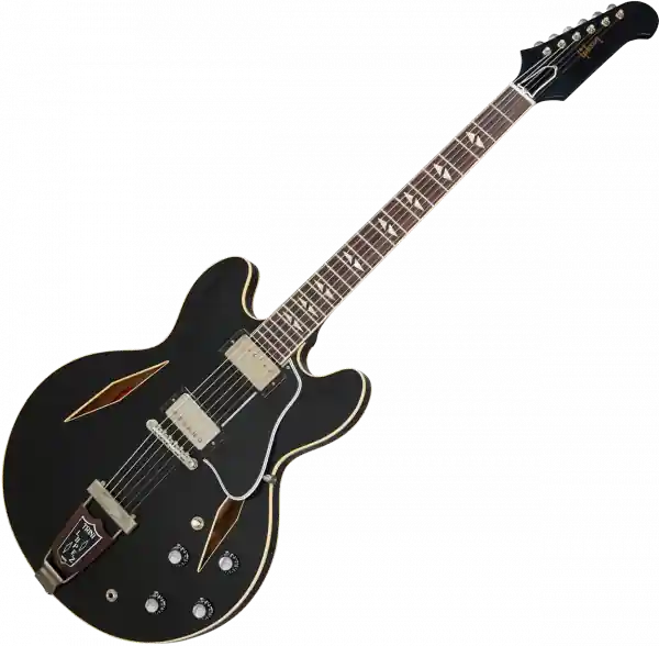 Based on thorough scans of the coveted original models, the GIBSON Custom Shop 1964 Trini Lopez Standard Reissue (64ESTLVOEBNH1) semi-hollow body electric guitar (with center block) gives you an authentic vintage ownership experience from the chunky ’64 neck profile to the unique trapeze tailpiece.”The Gibson guitar that was inspired by Trini Lopez is as exciting as the young performer who helped create it,” reads one of Gibson’s original 1960s advertisements. While Trini Lopez sadly passed away in August 2020, he continued to perform with his namesake model into his 80s, and the model is also favored by many other famous musicians from Dave Grohl to Noel Gallagher.