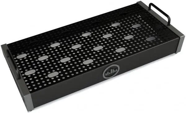 The TEMPLE AUDIO DESIGNS Templeboard Solo 18 GunMetal Grey pedalboard (216 x 458 x 66 mm), is a little over one row of pedals deep. Unique perforated top surface and strategically placed cable management holes allow you to “Tetris” in a lot more gear than you might think.This is a great board for acoustic guitarists and minimalists. Temple Audio offers a wide array of accessories for easier connections, signal improvement and lighting.