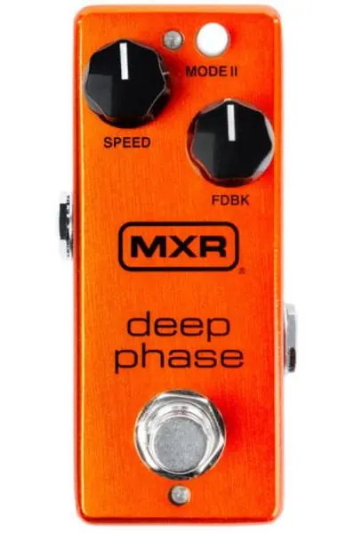 The MXR Deep Phase M279 compacte effect pedal delivers uniquely expressive vintage phaser tones with the impeccable build quality and tweakabiity that MXR is famous for.Unique vintage voice.Based on an iconic vintage circuit, the sound of the Deep Phase Pedal is crystal clear with a pronounced swoosh, scooped midrange, and a dynamic, voice-like response to your attack. Whether you’re digging in for fat, fluid chords or gently evoking tranquil textured melodies, this pedal will adapt to your playing intensity. It plays very well with the low end of the spectrum, too, so it sounds incredible on bass. While the original suffered from a serious volume drop when engaged, the Deep Phase Pedal has been carefully designed to match your level when you kick the switch.From smooth and subtle to turbulent and intense.With just two knobs and a switch, the Deep Phase Pedal offers a wide range of phase tones, from subtle liquid shifting to thick, swirling turbulence. The Speed knob adjusts the effect rate, while the FDBK knob adjusts the intensity and sharpness of the phase peaks. By default, the Deep Phase Pedal runs on 4 phase shifter stages for a smooth effect. The Mode II switch doubles that to 8 stages for twice the number of peaks and a more animated texture.