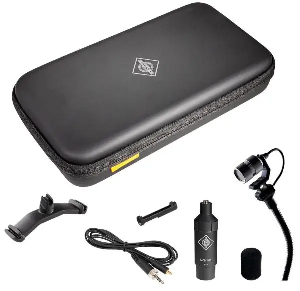 Complete set of Neumann miniature clip-on microphones for cello.Complete set for using the Neumann Miniature Clip Mic MCM system on the strings of a cello behind the bridge. Contains: KK 14 capsule, SH 150 gooseneck, KC 1 cable clipAC 31 cable, MCM 100 output stage, WS 110 wind shield, MC 2 clip. Delivered in a handy soft case.