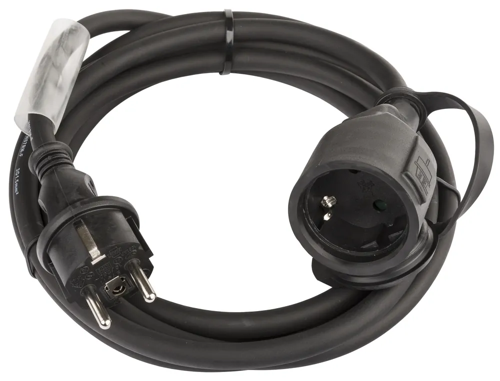 Soepele 3G1,5 stroomverlengkabel, lengte 3m, met pluggen met randaarde en een 7cm transparante krimpkous.