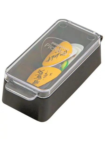 The Rockboard Pedalsafe Pick Box is a useful accessory for musicians who want to keep everything in one place. No more lost picks or other small, important accessories! The Pick Box comes with a reusable silicone adhesive pad that sticks to any smooth surface without leaving any marks.