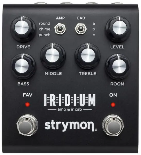 Nothing reveals the true nature of your guitar and your playing like a world-class tube amp driving a perfectly matched speaker cabinet in a great sounding room. STRYMON Iridium Amp & IR Cab is a pedal that truly delivers that sound and feel, with simple controls for effortlessly dialing in the perfect amp tone when going direct. Discover inspiring tube amp responsiveness, unprecedented impulse response speaker cabinet realism, and controllable natural sounding room ambience. Revealing all the subtle nuances of even the softest fingerstyle playing, Iridium gives you three iconic amplifiers, with a total of nine impulse response speaker cabinets that complement the tonality of the amp. Skip the hassle of lugging around or miking amps. Place Iridium on your pedalboard and send gorgeous stereo amplifier tones, stunningly realistic cabs, and lush room ambience direct to a recording interface or PA system. With Iridium, it’s a snap to dial in a direct tone that will truly inspire and sound great whether you are monitoring through in-ears, floor wedges, reference monitors, or studio headphones.Round Amp is based on a Fender® Deluxe ReverbChime Amp is based on the Brilliant channel of a Vox® AC30TBPunch Amp is based on a Marshall® Plexi (Super Lead model number 1959)Strymon Matrix Modeling™ process captures all the subtleties and unique character of each amplifier. From the unique composition of each tone stack, to component values, bias levels, corner frequencies, and tube stage gain. All of these factors affect the way a note or chord reacts and evolves over time, and all have been mathematically modeled with the highest fidelity.Included is a multi-stage power sag, so that the sag response and time constant for each stage of the amplifier is modeled separately, adding further harmonic complexity and realistic feel. Strymon also modeled the compression, limited cone movement, and speaker distortion that can happen at high signal levels.Iridium comes pre-loaded with a carefully curated collection of premium cabinet IRs from OwnHammer, Celestion, cabIR and Valhallir. You can also load your own IRs using Strymon Impulse Manager software. With full 24bit 96kHz resolution for the entire 500 milliseconds of its speaker cabinet impulse responses, Iridium is able to use the absolute highest quality IRs available. This means countless details are accurately preserved and reproduced to give you a completely real speaker response. Every cabinet resonance, speaker vibration, as well as reflections between the cabinet, the mic, the floor, and the ceiling; all the minuscule cues that tell our brain we are listening to our favorite cabinet are preserved, providing completely lifelike realism.