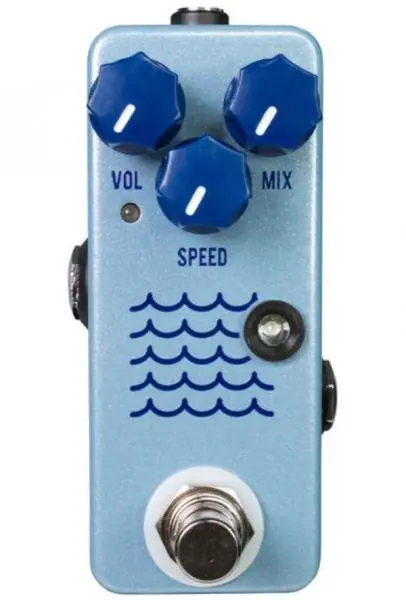 The JHS Tidewater Tremolo analog effect pedal faithfully recreates the beloved Fender Blackface or Vox tremolos with a warmth and character you would only expect from a vintage amp, with simple controls and a small footprint.The controls are Volume, Mix and Speed. The Volume allows you to set the overall volume at unity, below unity, or above unity for a boosted tone.With the Mix turned all the way down you can use the Tidewater as a warm preamp boost. The Mix knob controls the depth of the tremolo while the Speed knob controls how fast the tremolo moves, indicated by the LED next to the Speed knob. Inside the pedal on the back of the PCB there are three small dip-switches. When all three switches are in the down position, the range of speed available is faster. When all three switches are in the up position, the available range of speed is slower.
