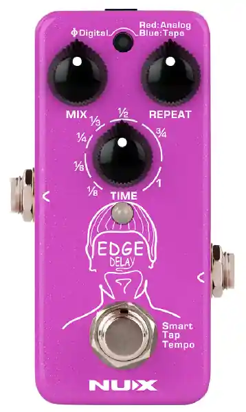 The Edge delay (NDD-3) is a mini delay pedal with 3 different delay types including ?Phi Digital Delay, Analog Delay, and Tape Echo. You can switch delay types by pressing and holding the footswitch.