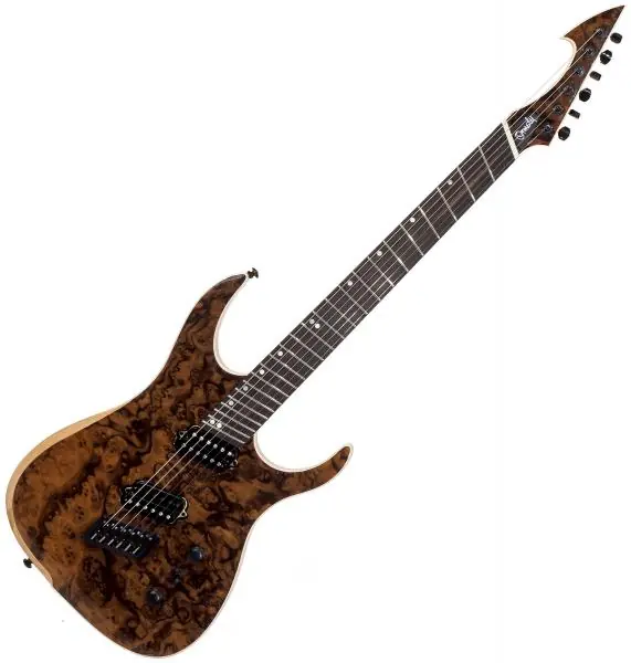 The ORMSBY Hype GTR 6 Swamp Ash Walnut Burl (NAT) multi-scale / fanned frets solid body electric guitar is a modern take onan american classic, with an ergonomy optimized for Djent Metal and siblings styles playing techniques and sounds. Made in Korea, Ormsby case included.The Ormsby Guitars Hype GTR isproduction version of the coveted Hypemachine made in ormsby Australian custom shop. For many years now this modern guitar model has been turning heads the world over for its balanced aggressive looks. The Hype GTR is designed to meet the needs and demands of modern guitarists.It features a modern deep carve set-neck that allows players to have unhindered access to all 24 stainless steel frets. Included popular custom shop neck carve, a balanced D shape with round shoulders that provides just the right feel and ‘meat’ to the neck and a perfect thumb resting position.As with all GTR models, the Hype GTR utilises Australian custom shop designed pickups that produce a variety of tones that allow your guitar, effects, and amp to function in unison and retain their individual characteristics. This guitar can go from the cleanest cleans to the heaviest of metals (or djents!) with plenty of tones in between thanks to its coil-splitting options.Perhaps the most important feature of this modern instrument, it uses Multiscale design that was developed from the ground up over 10 years ago. Simply put, it improves the tonality, ergonomics, and overall playing experience of the guitar (read more here), and can handle even the most unique of modern tunings.Every Hype GTR uses our custom hardware we designed in conjunction with Hipshot Products USA to meet our high demands in quality, including our unique multiscale bridge, locking tuners and O-Ring controls. Also included with every GTR model is a fitted and embossed hard case so your guitar is always safe.