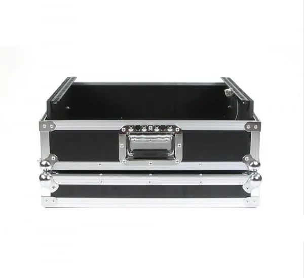 Flight case for mixing desk with icline top.- Ball-type metal corners for protection and stacking- Aluminium profile angle / Corner reinforcement- Recessed metal carrying handle- Supplied with protective cover / 2 butterfly locks- Black colour finish- Size: 19″.