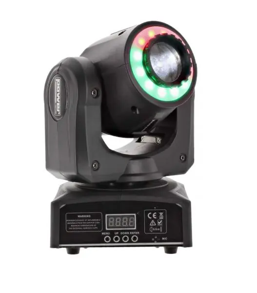 the Lyre Spot 40 Ring with ring.The Lyre Spot 40W Ring is a 2-in-1 lyre with a 40W 13W white main led and a 12 LED SMD 5050 RGB 3-in-1 ring. Very innovative it allows to achieve excellent effects with gobos and ring washing LEDs. It has two DMX control modes, a Strobe, internal programs, a gobos wheel and a color wheel, adjustable focus, all in a compact format. Ideal for a club installation, dance floor, bar and various services (DJ, animation, etc.).