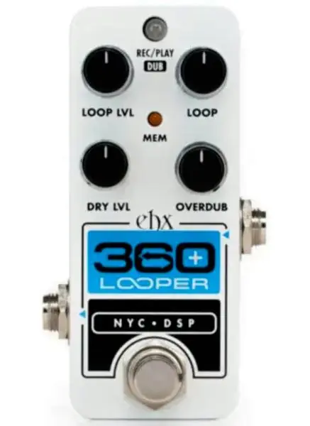 Building on the simplicity of EHX Nano Looper 360, this EHX Pico 360+ Looperis packed with musical features to keep you jamming without missing a beat ! With 6 minutes of loop recording time with unlimited overdubs over 11 loop memory banks, the 360+ also features an OVERDUB control which sets the level of playback of previously recorded loops while overdub new loops, making it possible to create ever-changing loops and ambient sounds scapes.Undo-Redo allows for quickly taking out the last overdub to change texture on the fly or fix a pesky mistake. Programmable Overdub/Playback order lets you change which mode the looper enters after recording the initial loop. Adjustable fadeout time from 1-10 seconds applies a musical fade to your loop when you stop the loop. DRY and LOOP levels are independently adjustable for a precision blend of layers.