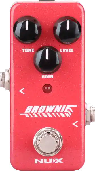 The BROWNIE MINI CORE DISTORTION is a pedal offered by the Nux brand.The Brownie Distortion mini pedal delivers the famous sounds of the stacks of British all-tube amps from the 70s and 80s that conquered major stadium concerts. These British amp heads and their numerous speakers were modified at the time to push the gain level even further and bring out the guitar heroes’ wild solos from the mix! These “hot-rod” amp heads deliver powerful, warm and cutting distortions that founded the first hard-rock and metal anthems.The Nux Brownie Distortion recreates the preamp and power section of this “Brown Sound” with hybrid circuits reproducing asymmetrical clipping characteristic of these tube amps. This makes it possible to keep low frequencies tight and defined even with a lot of gain, for a powerful and precise sound reproduction at the same time. With its simple and musical features, the Brownie Distortion pedal is truly a great classic distortion pedal in a very focused format!