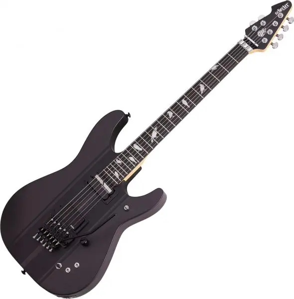 The SCHECTER DJ Ashba (270) Signature is a solid body electric guitar built in South Korea, a singular and attractive iteration of a classic american double cutaway with Alder body, bolt-on Maple neck, 22 frets Ebony fretboard, active EMG 81 bridge pickup plus Fernandes Sustainaic system, and Floyd Rose tremolo.