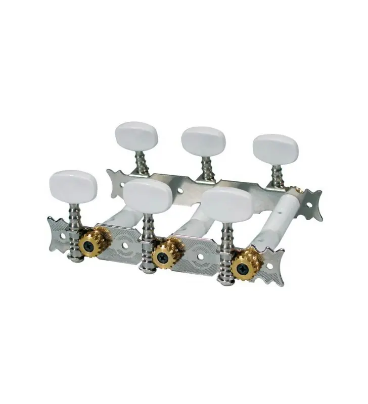 Stemmechanieken voor klassieke gitaar, nylon as, 3x links+3x rechts, 70mm, plastic knoppen