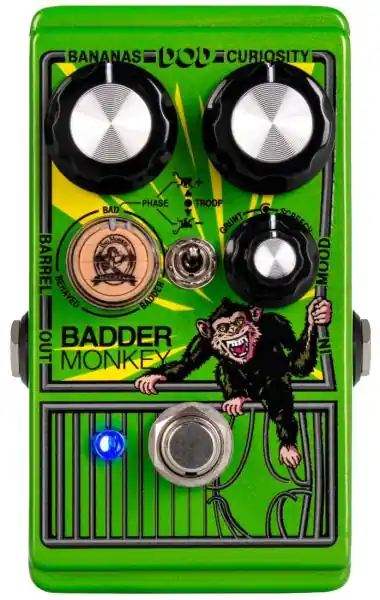 Evolution of the widely acclaimed original “Bad Monkey” circuit, DIGITECH Badder Monkey features patent-pending 360-degree rotating Barrel Control selects Behaved, Bad, Badder Circuits. Blend any 2 of the 3 to get hundreds of different mixture combinations. Or combine all 3 in Troop Mode ! The Badder Monkey’s reversible StagePlate™ lets you quickly switch between a grippy skid pad and a hook surface for pedalboard mounting, giving you maximum stability and convenience.