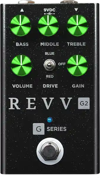 The REVV G2 voiced after the flagship Generator 120 Green Channel is an expressive crunch channel loved by Nashville session artists for its feel and clarity. Now it has its own overdrive pedal to match, now in a limited edition Black Sparkle Series enclosure.
