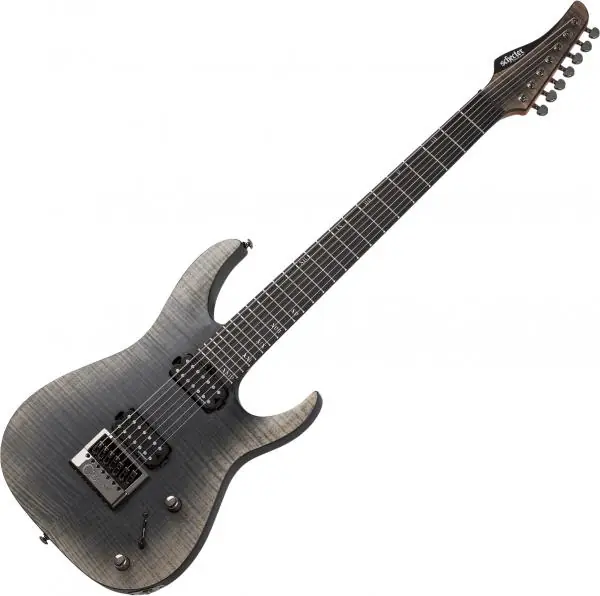 The SCHECTER Banshee Mach-7 Evertune (#1415) is a seven strings / baritone solid body electric guitar built in South Korea, with Swamp Ash body and neck thru body, 24 frets Ebony fretboard, Lundgren M7 pickup (played by Meshuggah), and and maybe the best bridge on the planet, the Evertune. It delivers constant tension that keeps your guitar in tune and with near perfect intonation up and down the neck under almost any condition. Excellent built quality, great playing comfort.