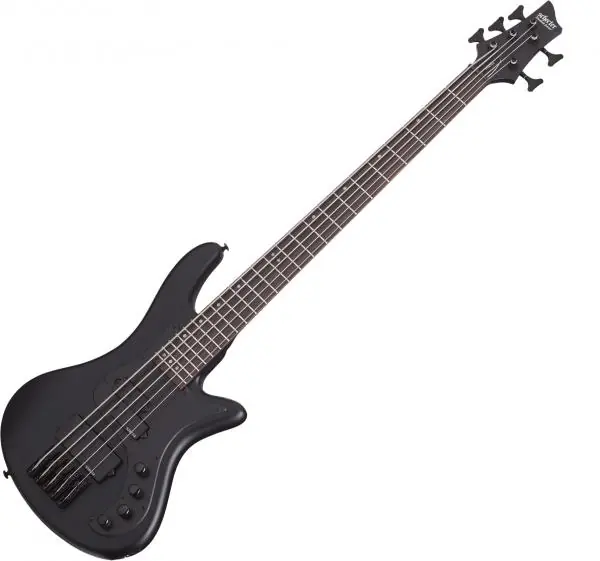 Somewhere in between an Ibanez and a Music Man, SCHECTER Stiletto Stealth-5 #2523 five string solid body electric bass offers everything Metalheads will appreciate, but can widely fit all kinds of raging Rock. Basswood body, Maple bolt on neck, Rosewood fretboard with 24 frets, active electronics.