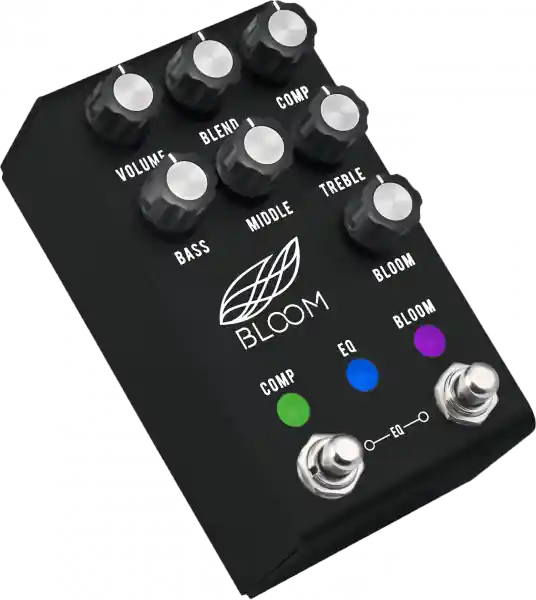 The BLOOM from Jackson Audio is a comprehensive dynamic engine that is designed to give guitarists maximum dynamic tonal control in ways never before possible. The BLOOM v2 – MIDI takes everything people love about our original BLOOM and updates it with MIDI! The BLOOM v2 – MIDI now offers MIDI control over all 6 compression settings, circuit ON/OFF (COMP, EQ, BLOOM) and bloom level; the bloom level can also be expressed via MIDI! A three-fold device, the Bloom manipulates the dynamics of the instrument by way of precisely tuned optical compression, equalization, boost and sustain circuits which can be activated separately or in tandem with each other. Keep reading below to learn how the BLOOM has become a modern classic on countless pedalboards!