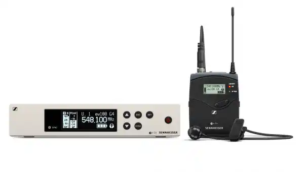 TheEW 100G4-ME4is a Wireless Microphone Tie Transmitter Pack from Sennheiser.Robust all-in-one wireless system incorporating a pocket transmitter and a discreet ME4 clip-on microphone (cardiode) with high speech intelligibility for everyday use on stage.A true diversity half-rack receiver in a fully metal housing with intuitive LCD display for full control, including an easy and flexible wireless synchronization between transmitter and receiver via infrared.Fast frequency allocation, up to 12 receivers via a new link function, Up to 20 compatible channels, Up to 42 MHz bandwidth with 1680 selectable frequencies UHF stable rangeTransmission range: up to 100 meters.High RF output power (up to 30 mW) according to country regulations.