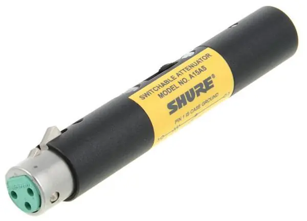 To prevent any inputs or channels from overloading, Shure developed the A15AS in-line switchable attenuator. It reduces any balanced microphone’s output level,protecting your equipement.