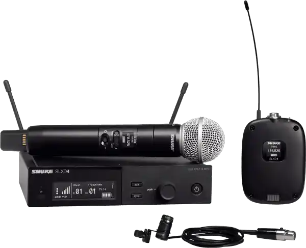 The Shure SLXD124E is a handheld wireless microphone.The SLX-D Series benefits from Shure’s latest technological advances in digital wireless transmission.Whether it’s a conference room, a place of worship, or an auditorium, the SLX-D delivers exceptional audio quality and rugged, stable RF performance, ensuring that you can operate any event with peace of mind.The system is available with single or dual receivers in a wide range of out-of-the-box configurations. Transmitters can be powered by AA batteries or an optional Shure Ion-lithium battery for longer battery life and lower cost of ownership.Of course, the SLX-D Series is compatible with the entire line of Shure accessories and antennas.