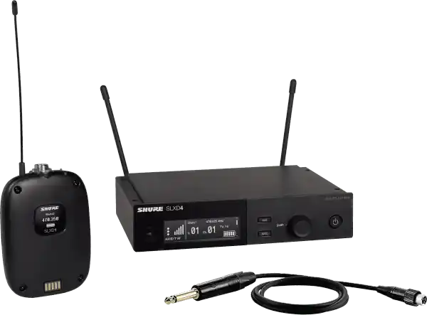 The Shure SLXD14E-H56 is a wireless instrument system.The SLX-D delivers crystal-clear 24-bit digital sound and rock-solid RF performance. It’s easy to set up, and its charging options are suitable for many versatile wireless installations. Several receiver options (one-channel, half-rack width and two-channel, 1U rackmount), transmitter options (hand-held and bodypack), and a wide range of microphone system configurations for vocals, ties, headsets, and instruments. Compatible with Shure UHF wireless antenna distribution and antenna offset accessories.