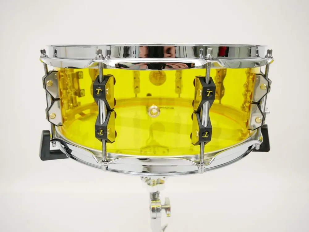 Tamburo snaredrum 14″ Acrylic ketel in geelDe VOLUME snaredrumserie is gemaakt van methacrylaat met een dikte van 3,5 mm.Ze zijn niet alleen ultralicht van gewicht, maar bieden ook een ongelooflijk breed stemgebied—geschikt voor alles van lichte jazz tot heavy metal..