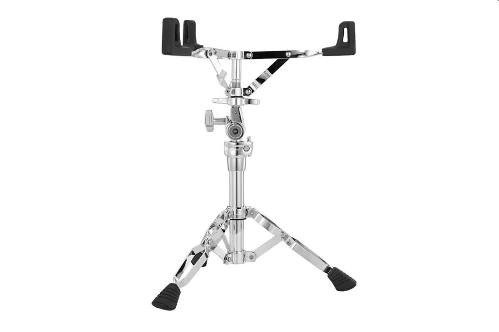 Pearl snarestand model S-930Advanced drum hardware for high-impact gigging, the S-930 Double Braced Snare Stand is a road-ready ally for any player’s primary drum. Its sturdy tubing and die-cast tier joint keep snare drums in their place with serious stability. To deliver the superior tone, Pearl’s Patented Air Suspension Rubber Basket Tips suspend drums from 10″ to 14″ by the bottom hoop, for a secure hold without overdue tension.The S-930’s Uni-Lock Basket Tilter delivers smooth, gearless positioning, and like all members of the Award-Winning 930 Hardware family, its Trident Design Tripod base sports heavy duty double braced legs for balanced support in play.HEIGHT450 – 670 mm (17.7″ – 26.4″)BASKET10″ to 14″ DrumsTILTERUni-Lock GearlessARM TIPSAir Suspension Rubber Tips(U.S.patent #6710236)LEGSDouble Braced Trident Style TripodLEG FEETSureGrip Rubber Tips
