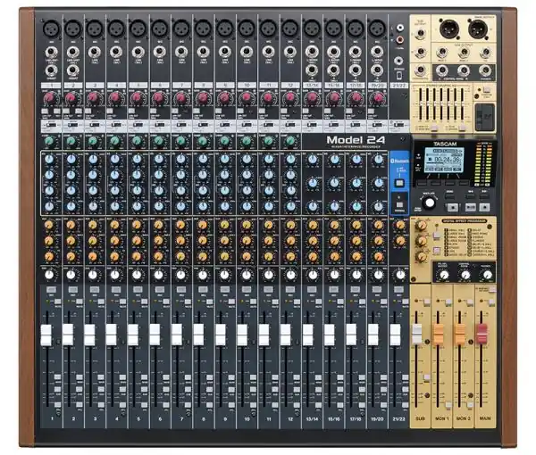 Le son classique, ressuscité – Une console professionnelle hybride, alliant la chaleur de l’analogique et les technologies modernes les plus récentes.Depuis toujours, Tascam crée des solutions d’enregistrement qui deviennent des standards : le 8 pistes sur bande Tascam 38, le multipiste numérique modulaire DA-88, et la légendaire famille des Portastudios, véritables studios intégrés portables sur cassette analogique puis disque dur. Aujourd’hui, Tascam réinvente son héritage, en alliant le son classique des consoles analogiques aux technologies audio les plus récentes : Voici les toutes nouvelles consoles live avec enregistreur multipiste, les Model 16 et Model 24.Que ce soit en répétition, en concert ou en production, les Model 16 et 24 constituent un mélange idéal : enregistreur multipiste, console de mixage et interface audio. Cette console d’enregistrement hybride triple fonction est le fruit d’une évolution parfaitement en phase avec les exigences actuelles du monde de la musique.