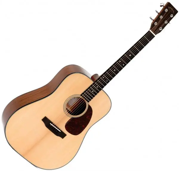 Reminiscent of a Martin D-18, the SIGMA Standard DM-18+ acoustic steel string guitar is a Dreadnought with solid Sitka Spruce topand layered Mahogany back/sides. It will please guitarists looking for a traditional, powerful and warm western. Its fingerboard is made of Micarta, a composite of linen, canvas, paper, fiberglass and carbon fiber, that sounds close to Ebony.