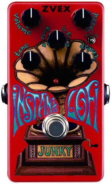 This pedal was designed to emulate the sounds and textures of the Lo-Fi Loop Junky in real time, but it goes far beyond that. Click it on and mix your sparkly clear compressed signal with the smashed, lo-fidelity warbled signal and listen to it become a luscious emulsification that can be blended to the most perfect depth. Achieve new haunting chorus sounds and pulsating vibrato. Unusual and fun, you’ve never heard anything quite like it.Vexter Series pedals are lower priced, featuring UV printed artwork. The parts inside Vexters are identical to the hand painted pedals.
