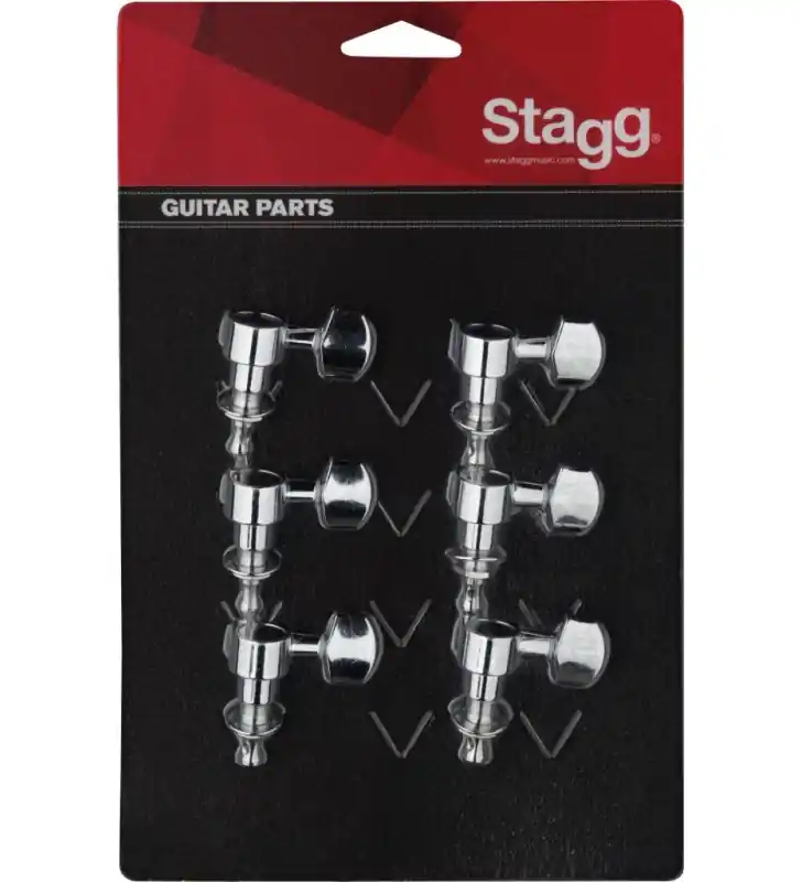 6 losse verchroomde mechanieken voor elektrische en steelstring-gitarenSet mechanieken voor elektrische gitaar- 6 in lijn- Gesloten, zelfsmerend- Gegoten behuizing- Verwijderbare metalen knoppen