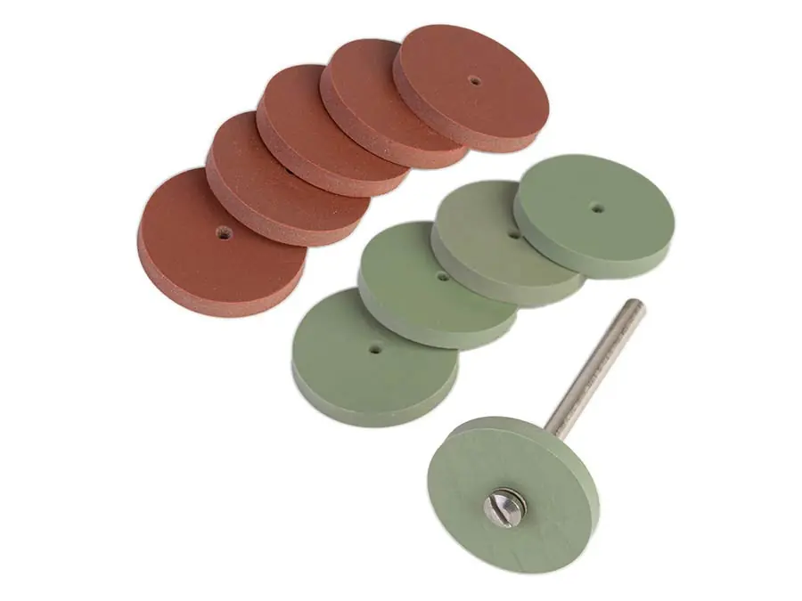 Super-smooth frets with your Dremel or Foredom! Rubberized ceramic wheels give your fret jobs that mirror shine and ultra-smooth feel players love. These are much faster and easier to use than hand polishing. The complete set includes fine and extra-fine wheels (5 each), with a 1/8″-shank mandrel.