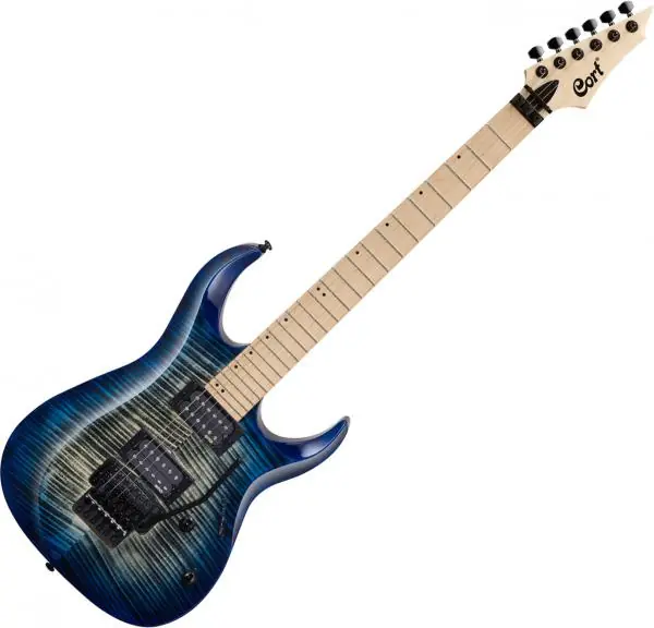 The CORT X300 (BLB) solid body electric guitar features premium materials and components with renowned Cort quality, workmanship and value. Premium-grade Flame Maple is mated with American Basswood body and Maple neck and fretboard for a full range sound that is balanced, deep and cutting simultaneously. The Floyd Rose Special tremolo allows for extreme dive-bombing and harmonic squeals while providing perfect tuning stability and the EMG Retro Active Hot 70 pickups deliver plenty of output with classic warm-sounding character. The EMG Retro Active Hot 70 set utilizes ceramic magnets in the bridge and alnico 5 in the neck producing high output Van Halen and ZZ top like tone of the late 70’s. Each pickup is outfitted with a uniquely voiced plug-in FET preamp giving you low-impedance output while alleviating virtually all noise, hum and buzz common in passive pickups. The outputs are voiced to give you an even volume between the neck and bridge for smooth pickup transitions.The Hot 70 set delivers all the passive feel and dynamic response of traditional passive humbuckers combined with all the advantages of active technology.