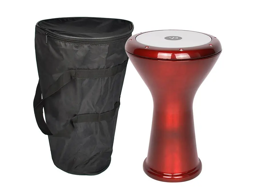 Deze naarEgyptisch model gebouwde Goblet drum, ook wel Darbuka genaamd, is licht in gewicht maar heeft een volle klank met een warme bas en helder klinkend hoog.